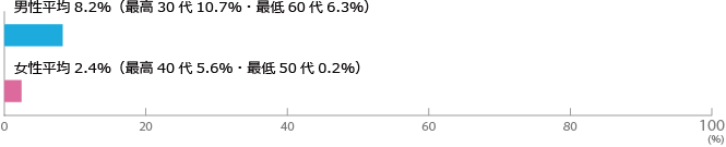 セックスの際の悩みに関する質問では、各年代の男性の3割以上が挿入時間の短さを悩みとして挙げているのに対し、女性は1割にも達していません。女性はむしろ、時間よりも快感や満足感を得られないことを悩みとして挙げています。